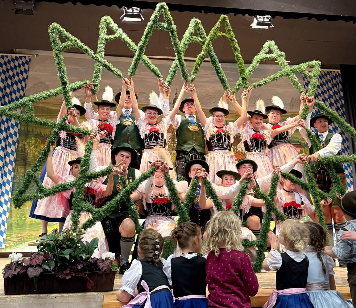 Zum Glück sind diese Gräben überwunden, und so konnten sich alle Merchinger über die gelungenen Auftritte der großen Jugendgruppe und der Aktiven erfreuen. Bei deren gemeinsamen „Auftanz“ konnte die Bühne die insgesamt 50 Deandl und Buam fast nicht fassen. Auch die Paartaler Sänger griffen mit ihrem Stück „Wia spät is auf da Wirtshausuhr“ das Thema des Abends auf. Ebenso fanden die beiden großen Ereignisse, die das Vereinsgeschehen in diesem Jahr geprägt haben, ihren Widerhall beim Heimatabend. So ließen es sich die anwesenden Burschen nicht nehmen, den eigens für das im Mai stattgefundene Gaufest einstudierten Burschenplattler nochmals zu präsentieren. Außerdem führten die Aktiven erstmals gemeinsam mit der Vereinskappelle aus Steindorf den ihnen zum 100-jährigen Bestehen gewidmeten „Stuadarfa“-Plattler auf, und haben so selbst den „Gschichtlan aus da Huamat“ ein weiteres Kapitel hinzugefügt.