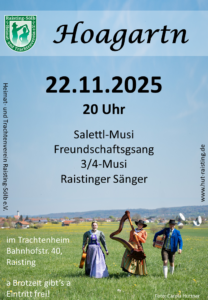 Lasst uns echte, unverfälschte Volksmusik und Gesang bei uns im Huosigau erleben und die Wahrheit im Satz von Franz von Kobell spüren: „Wann i a Musi hör, kenn i koa Trauer mehr…“.